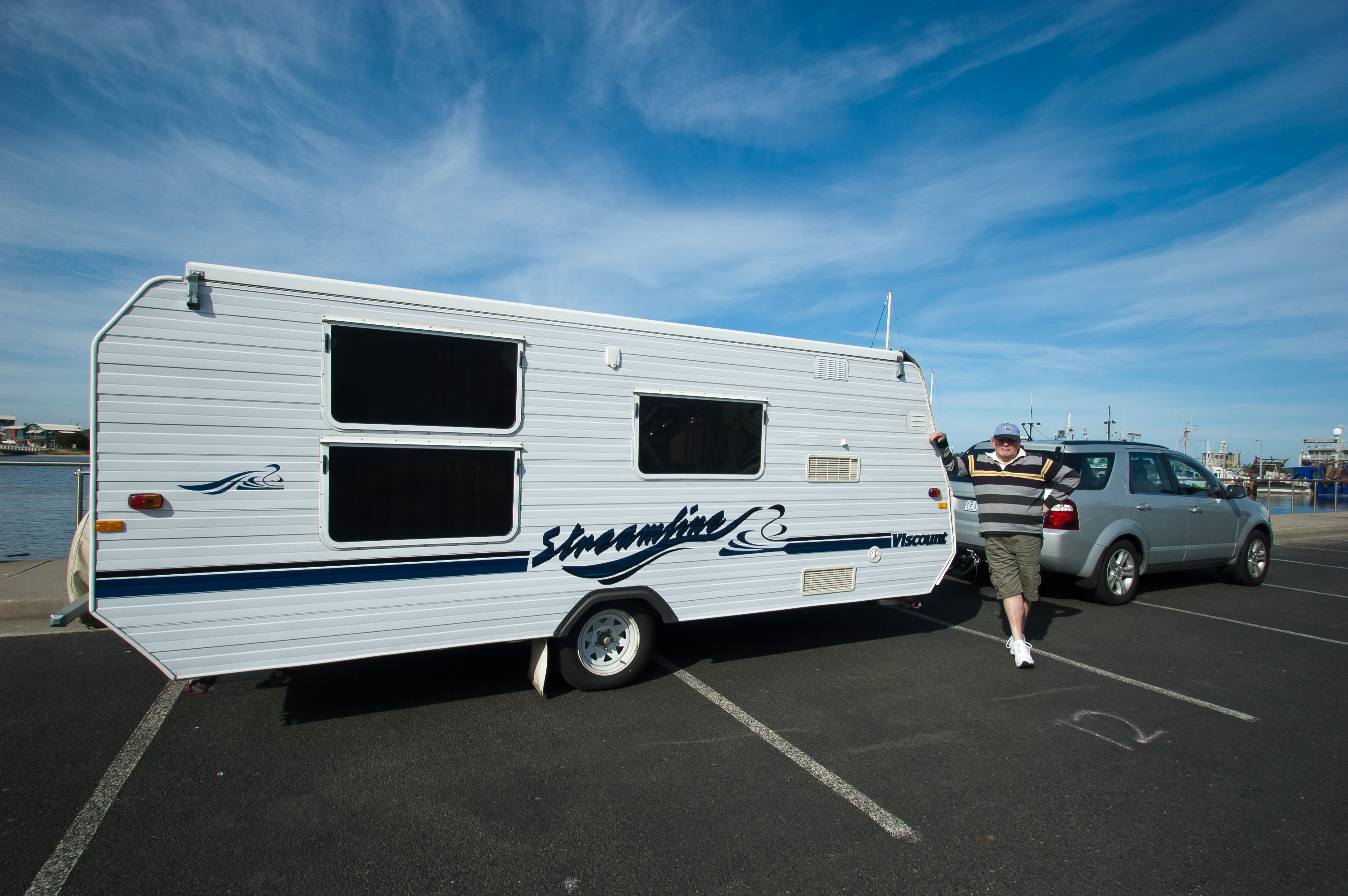 The final packing, which didn’t seem much, takes us longer than expected. We have butterflies in our stomachs. Our neighbour insists on taking photos of our rig from her balcony as we pull away. Such is the excitement. Before long we’ve hit the open road and the van tows beautifully with only a gentle rocking whenever the road is uneven and not a sound.
