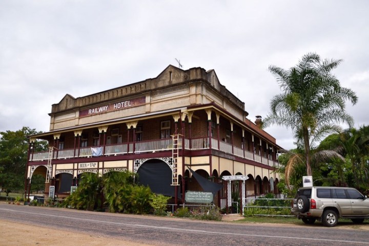 Ravenswood is about 80kms south east of Charters Towers. There’s not much out here but cattle that wander about the road and dry creek beds. An enormous mullock heap is a dead give away that there’s mining going on though. Small mullock heaps and old brick chimneys dot the landscape and a handful of old buildings. A post office / general store, a museum, hall and two live pubs. We choose the a Railway Hotel, the pub that advertises the coldest beer in Qld and are not disappointed. Hey, they use glycol as a coolant which means a lot to a Victorian beer drinker! Even red wine is kept in the fridge in these parts. The locals reckon that fridge temperature is room temperature in Europe. I reckon they may be right. Charlie the owners’ Dad is a Victorian too so that explains the ice cold beer. Anyway Charlie and the barmaid both like a chat, lunch is good and the three storey pub is as close as you could get to original condition. During the war the pub housed a Townsville boarding school, to keep the young girls out of harms way while the real boarding school became a barracks for troops.