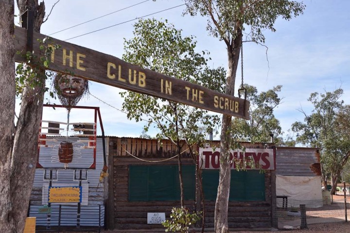 We bump along swearing and cursing the road and the dust and reading car door signs hanging from trees that extol the virtues of the three pubs. First is the Grawin Club in the Scrub and another car door reminds us that we are driving on a golf course and should watch for balls. Mulga scrub and bare dirt don’t usually conjure up visions of a golf club, but now I know better. With eyes peeled we find a flag and a rough wooden shelter. Upon entering the ramshackle (this is the only word that describes the whole district) pub we are greeted by a cheery barmaid and the place is cosy and inviting. There’s even a library room. An old miner with hair and whiskers that could house a family of birds sells us raffle tickets for the local Men’s Shed. We thank him even though we know that we’ll never win yet alone want to trek out here to collect the prize. The barmaid generously gives us a third mud map of the area which helps to make sense of the others that we’ve already gathered.
