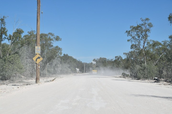 The return drive sees golfers and even a golf cart belting through the scrub at the Club in the Scrub and sheep, cattle, goats and kangaroos have taken ownership of the bitumen road.