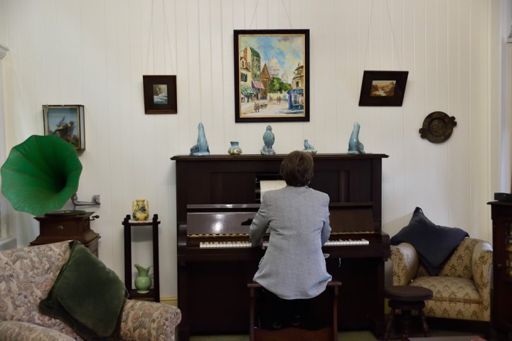 Greenmount Homestead at Walkerston, inland from Mackay, was built by the Cook family a hundred years ago and with no descendants to carry it on the homestead was given to the community of Mackay, with the proviso that the last maid Gloria remain in residence.A grand timber home topped with a red iron roof and surrounded by tall palms it sits high on a hill. Inside, timber walls and pressed metal ceilings 14ft high. It is in original condition and with window glass that was brought out from England floating in tanks of molasses.There’s a central dining room with sitting room and bedrooms on either side. Each room has French doors opening on to the wide airy verandah. While our guide plays the pianola ‘to give just the right atmosphere’ Gloria shows us the sweeping views across the paddocks to Mackay. How grand it is.