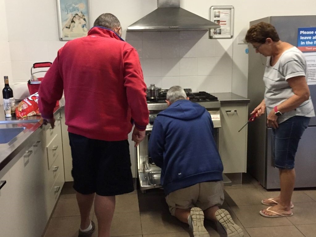 Elle & El bought a nice leg of lamb from the local butcher in Valla Beach and as we have a well equipped camp kitchen at this park they pop it in one of the large ovens. Part way through our Happy Hour drinks the gas goes out. The other oven is being used by another bunch of happy campers who sense our plight and give us a bit of cheek while our fellas are on their knees huffing, puffing and waving the gas lighter. Eventually Elle sees sense and tosses the lamb into an electric frypan and the veggies into a stove top casserole pot. Vee, who isn’t feeling all that flash decides that she can’t last the distance and crawls off to bed.