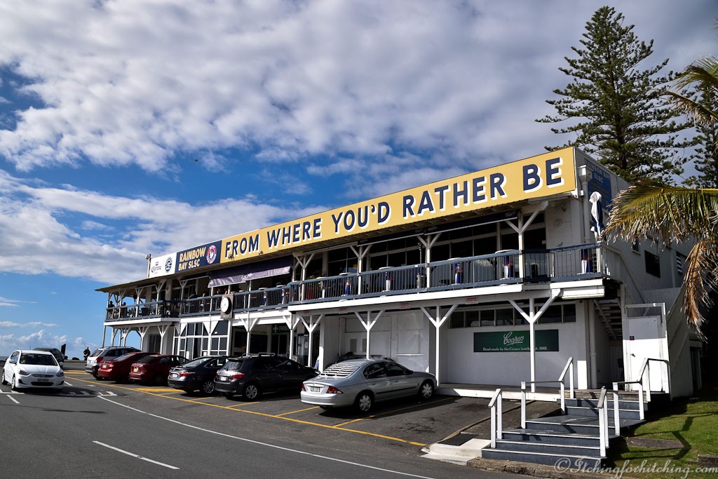 We stop for a beer at the old timber Rainbow Bay Surf Life Saving Club at Coolangatta. Home of the Quicksilver Pro. The bar is decorated with surfboards, the room with black and white photos and we climb stairs with the names of past surfing champions, legends all: Taj Burrow, Mick Fanning, Layne Beachley, Stephanie Gilmore…