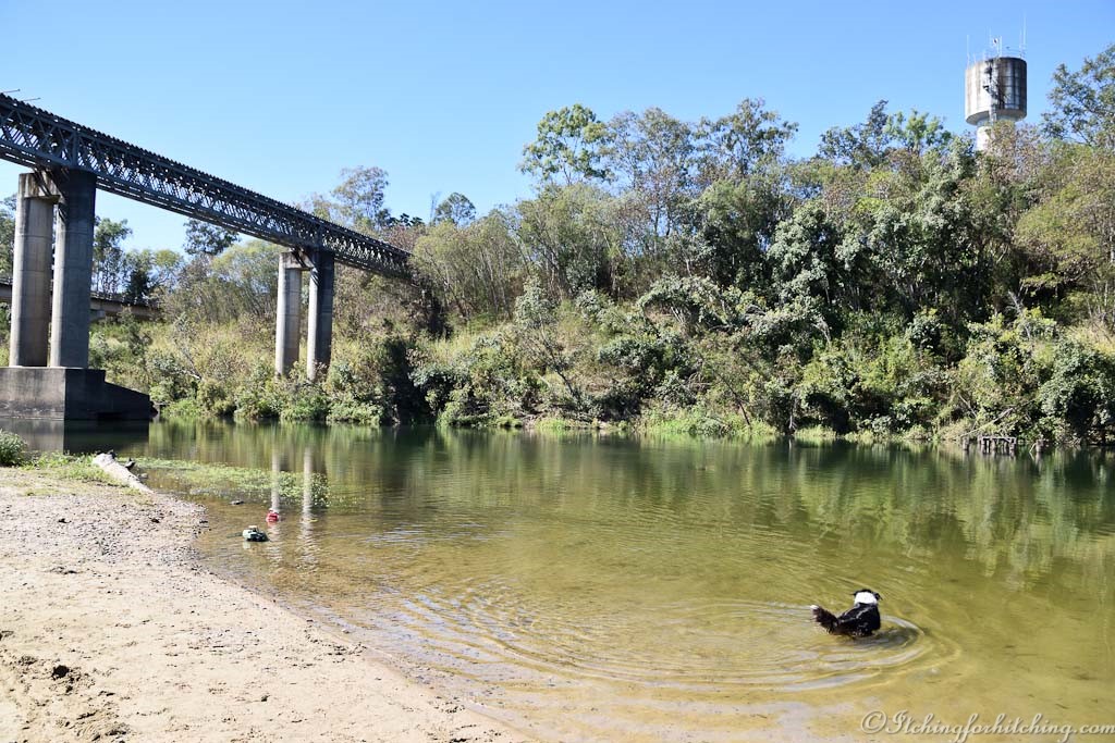 A popular swimming hole, Platypus Beach is below the cane railway bridge over the Pioneer River at Mirani. There’s plenty of room on the wide sandy beach for 4×4’s as well as picnickers. But you’ve got to love the positivity of the Mirani Pub for their sign placement. Afterall when people swim they get hungry…and thirsty.