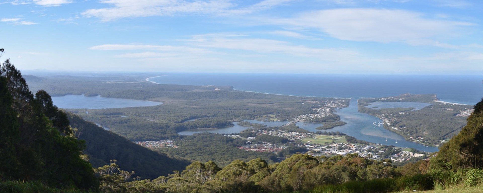 Our park neighbour suggests that we visit the North Brother Lookout at Laurieton. This region is known as Three Brothers and the mountains are named according to the Aboriginal legend, North, South and Middle Brother. We feel like we are driving up into the sky. The coast is a patchwork of lakes and below us Camden Haven River joins the sea. Now that is what I call a view.