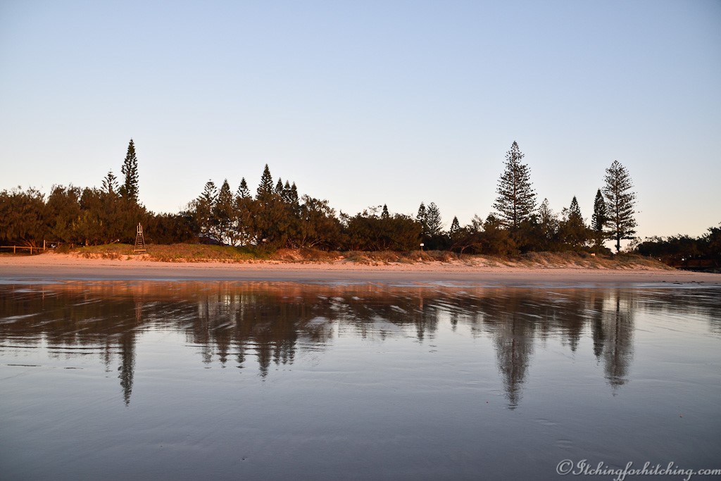 The Elliott Heads Holiday Park is on a point. A gentle curve of ocean beach on the northern side and to the south, the wide sandy estuary of the Elliott River and a grassy mound with one palm and some prickly pear that is known as Dr Mays Island at its mouth. The town is not grand. It could best be described as a comfortably relaxed holiday haven. There are no shops, one milk bar, a beach cafe and a bowls club and that’s pretty much the sum of it!