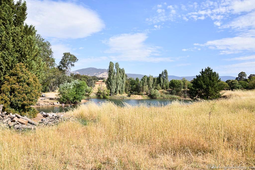 On a hot afternoon we take a drive around town and out to Yackandandah Waterhole at Allan’s Flat. This quarry like swimming hole was formed by gold dredging in days gone by. The swimming hole is large, tree lined and popular with the locals in today’s heat. One group were standing around a surfboard, up to their chests in water chatting and using the surfboard as a floating bar for their beers. Now that’s using your noggin.