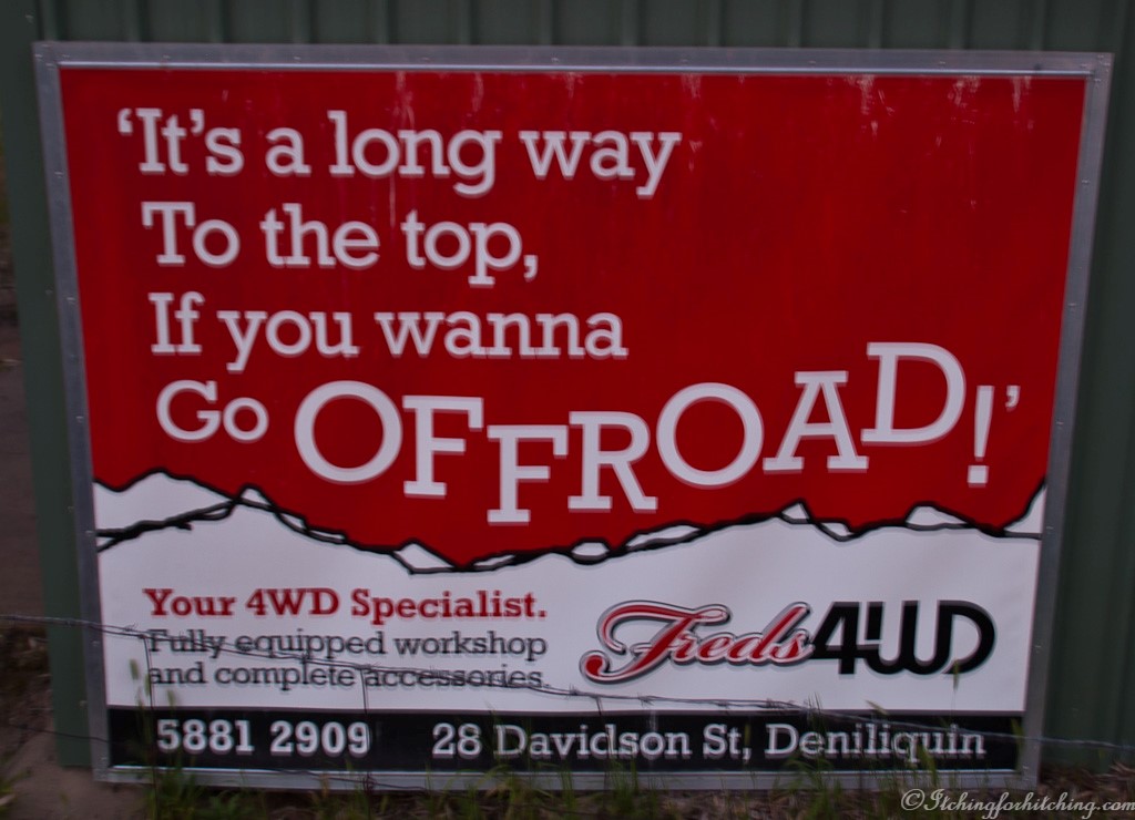 First there was “It’s a long way to the top” (AC/DC or Acca Dacca to most Aussies) on this trip we went to Karumba on the Gulf of Carpentaria. After traversing the country from the bottom to the top and back again we found this sign at the entrance to our final caravan park….