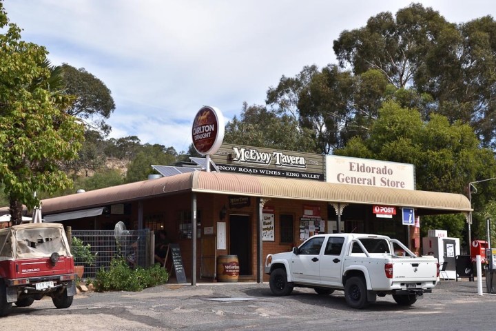 After our lesson in mining engineering we stop for a drink at the McEvoy Tavern in town. An adjunct to the general store it is billed as the smallest pub in Victoria. And no, it isn’t the pub that my Mum used to ride out to, that pub is long gone.