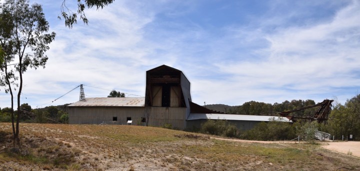 We follow the signs to ‘the dredge’ and gasp. What we find gobsmacks us, it’s not just a bit of old mining equipment but a huge iron structure equivalent in size to the Victorian Parliament House building and when it was built in 1936 it was the largest dredge in the Southern Hemisphere. At one end buckets dig the gravel from the riverbed and transport it to the heart of the machine to be crushed. The tailings are then pumped out the back. This monster floated on the water and worked 24hours a day mining gold and tin and… it could be heard 10kms away. When it ceased operation in 1954 it had produced 2 tons of gold and no doubt a lot of headaches.