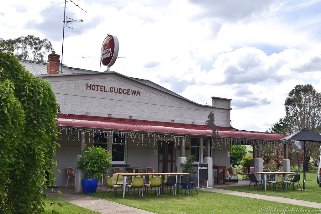 Today we’re celebrating Veewee’s 70th birthday with lunch at our new favourite pub The Cudgewa (or Cudgie to the locals). It’s turned into a lovely sunny day and we’re ushered through to a sun-filled dining room which has recently been renovated. Woody keeps muttering that the pub looks nothing like he remembers from way back when. We have pizzas, a zucchini and blue cheese pasta and the guest of honour devours an enormous T Bone steak. Needless to say, the food is delicious and the atmosphere cosy and homely with views to the ranges and a woodfire. There’s even a pianola in the sitting room. We learn that Ralph and Tracey Fair bought this long closed pub with the idea of turning it into a wellness retreat. Bowing to local pressure to revive their pub, they did. And they did it with taste, passion and creativity. During the bushfires Ralph stayed behind and fought to save the pub with the help of several dowsings from passing fire trucks to quell the ember attacks. The old pub was surrounded on three sides but survived. Evidence of the fires can be seen from the dining room as the range behind is still burnt and brown. There’s camping on offer here with plenty of room at the back of the pub and accommodation too in beautifully restored rooms.