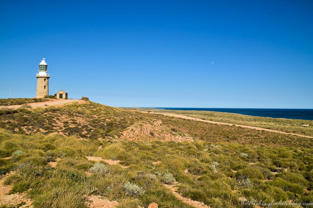 We camp for the night at the Barradale Rest Area which is beside the Yannarie River. It is a well appointed rest area and we are kept entertained watching the road trains approach the bridge. The highlight being when one prime mover tows another fully loaded four tray road train across the bridge, now that’s torque. He’d have no trouble getting up to the lighthouse.
