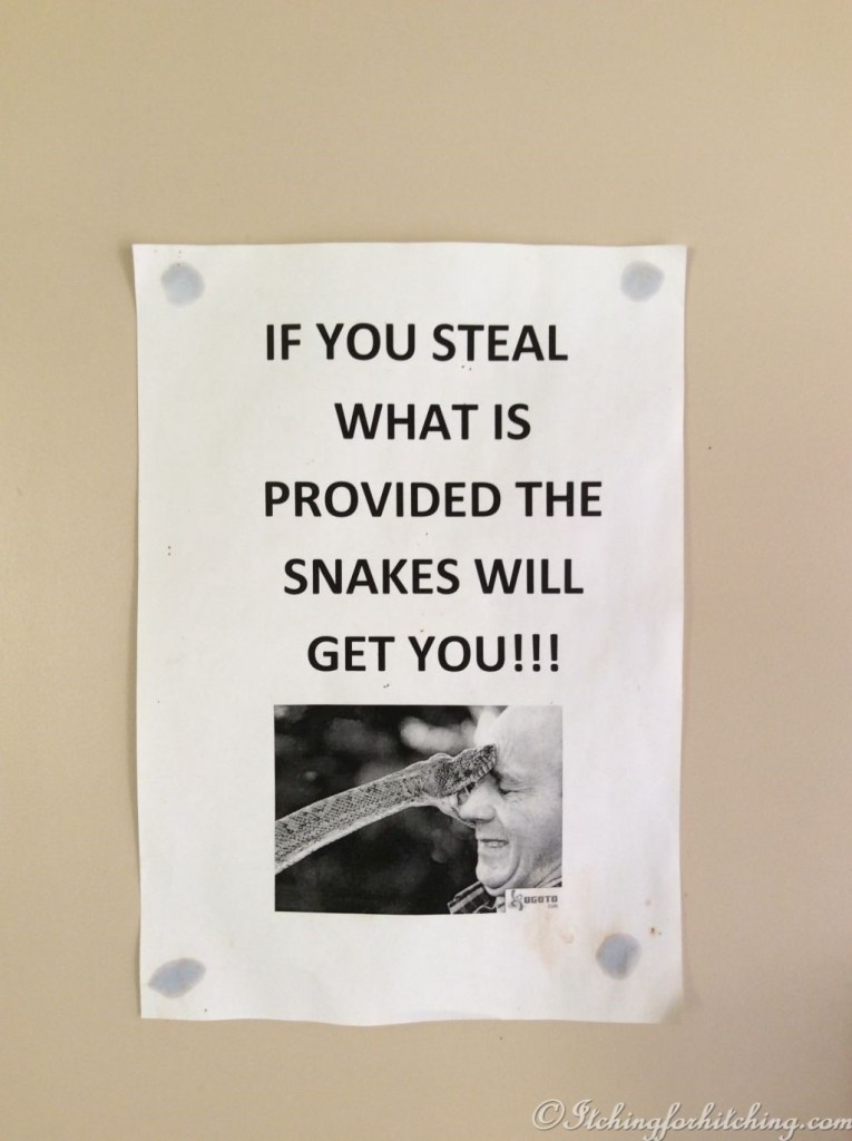 Phone reception takes up a lot of our conversation these days and it goes something like “how many bars have you got? One or two? One, oh that’ll drop out.” This in mind we sit on the lawn trying to download a ‘must have’ app and it takes forever and we watch real Cowboys swagger across the lawn for a meeting in the homestead and we read instructions on the wall on how to handle snakebite. By the looks of the snake ID pictures I reckon you’d need more than a compression bandage bearing in mind that the nearest hospital is about 200kms away. In the well-equipped camp kitchen there is a sign:
