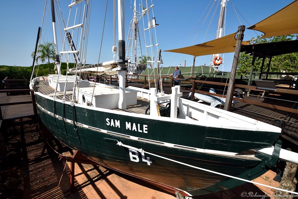 We ‘do’ the Pearling Lugger Tour and sit in an old wharf shed learning about the romance and horrors of the pearling industry of the past. In its heyday there were 404 pearl luggers operating out of Broome harvesting pearl shells for mother of pearl and sometimes they found natural pearls. What a far cry from today’s industry. We were surprised to learn that like in Queensland, ‘black birding’ (a polite term for slavery) was practised to coerce the Aboriginals into doing the shell diving. This was prior to the invention of hard hat diving in deeper waters in which the Japanese divers were to excel.