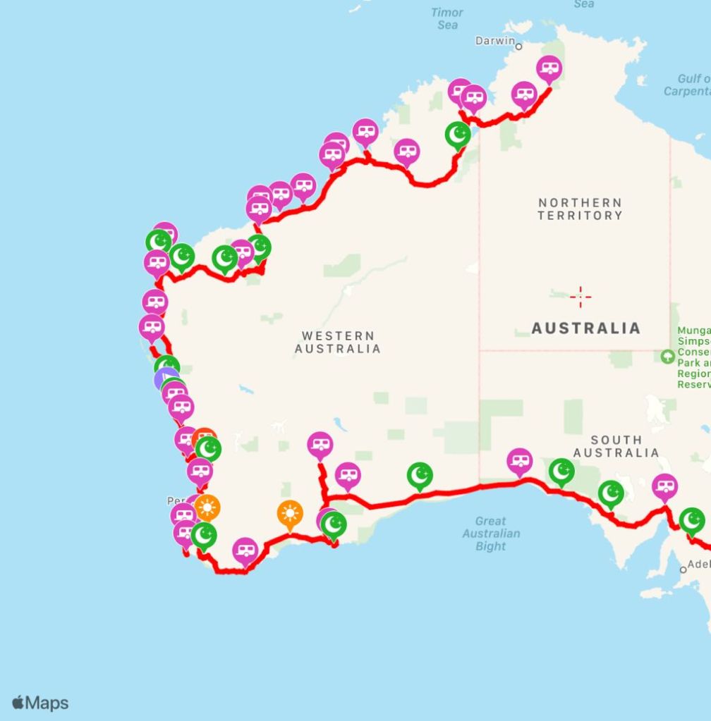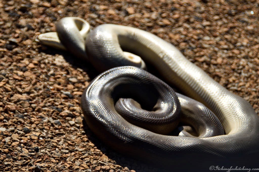 The trees are getting taller now and we’re chatting about the mirrors that we’ve lost along the way when we notice that the left mirror has gone, again. Looks like that galah must have taken it on the way past. Grass fires burn on the roadsides as this is the time for burning off. The hawks are having a great time catching the fleeing critters.