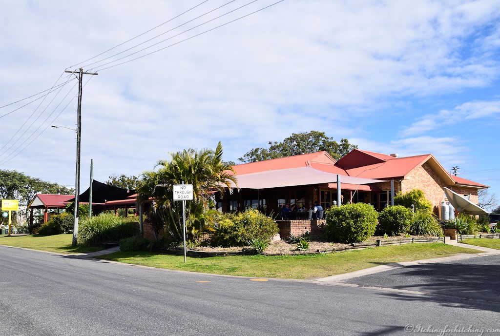 We quickly gallop across to the pub and secure a table in the sun overlooking the river and far from others. The Clarence River looks to be a kilometre wide here and further downstream we can see a ferry crossing. Lunch is excellent, sticky beef ribs and chips with salad. The town of Lawrence is a quaint mix of houses set high on stilts to avoid river floods. Hey! That was a pub lunch on a Monday!