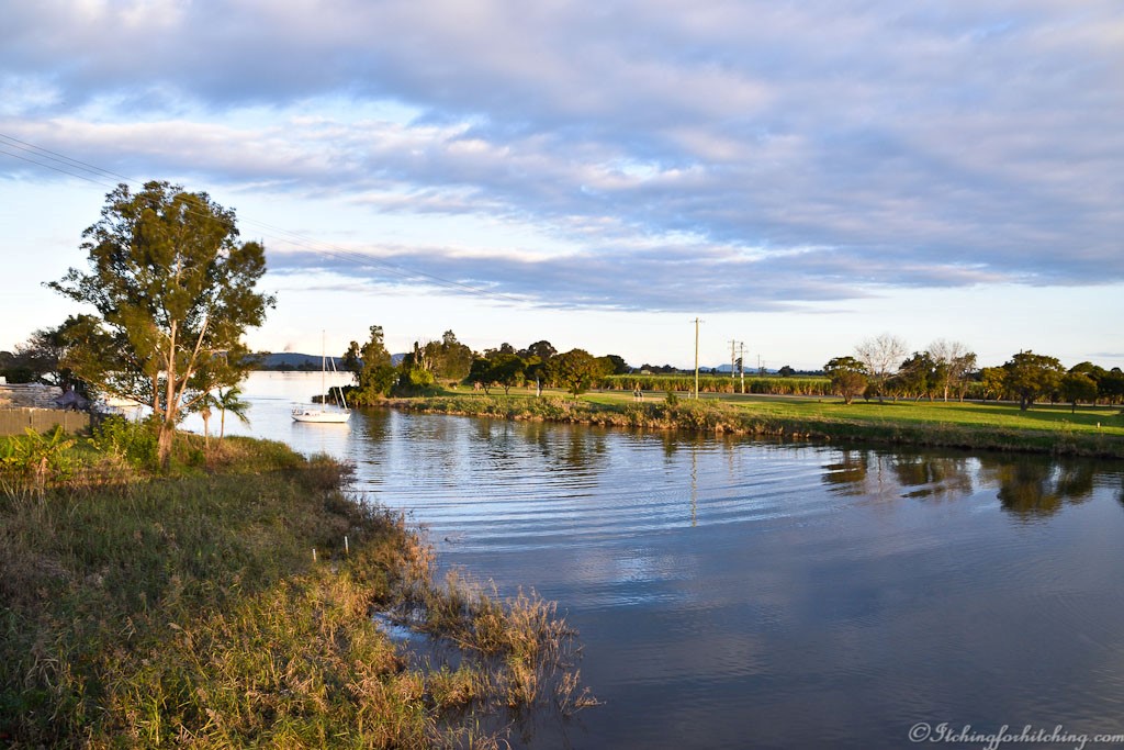 We veer off the highway to Grafton which seems to totally flummox Gabbi Garmin as Grafton is no longer on the A1 but now on Big River Way. We follow the north bank of the Clarence River through low land dairying country interspersed with sugar cane.