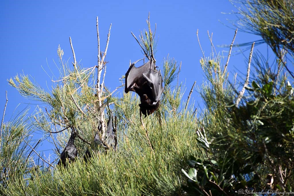 Flying Fox colony beside the Evans River, Elle hates bats with a passion and on this trip they seem to be following us.