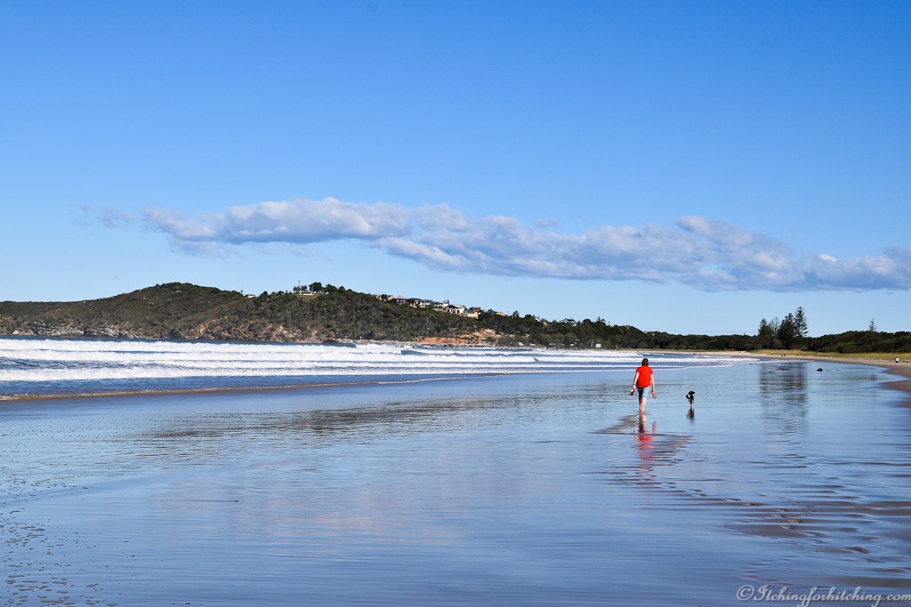 To the north of the town the main surf beach is known as Aircraft Beach it is perfect for an off leash run for our four legged travelling mate mate Nic.