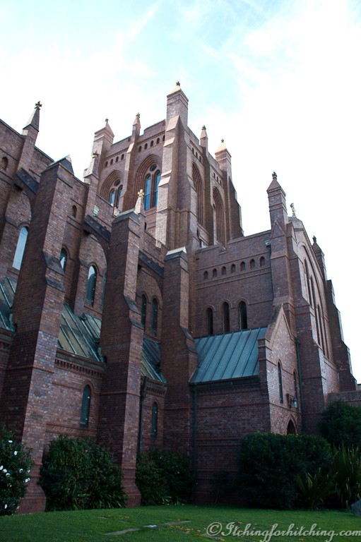 It was a warm night but now overcast. We caught the ferry across the Hunter River to Newcastle. What a bargain $2.50 for an all day ferry and bus pass and it takes less than 5 minutes to cross the river. It seems that this is a lifestyle for the locals as they pop on and off oblivious to our delight. We walk up to our regular coffee haunt Sprocket for a caffeine fix and more beans. Our day is to be spent chasing our needs so it throws up some interesting sights. We need a supermarket and the nearest is in Newcastle West, thanks to Google Maps we’re off along King Street and we spot an interesting hilly garden. Up the stairs we go. It is the old churchyard of the Christ Church Cathedral and each step has the inscription of a long gone tombstone recalling some unusual deaths “Killed accidentally by musket” and “Illegitimate, drowned”. The cathedral is quite imposing and we’re lured in by organ music. The Reverend David Campbell takes us on a tour of the nooks and crannies of the church. He is an Irish Presbyterian minister but along with his own St Andrews church his role is that of duty chaplain at the cathedral. A fascinating man with a lilting accent who has lived his life back and forth between Australia and Northern Ireland and who has a passion for politics we spend half an hour or more with him.