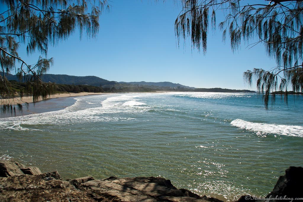 At Coffs Harbour we visit the lookout and the harbour is sparkling in the sun. We walk along the breakwater and buy fish at the co-op.