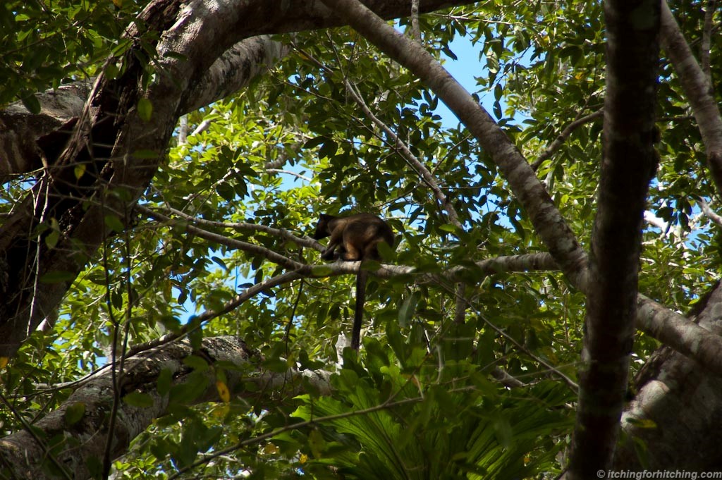 We have a light lunch at the Whistle Stop Cafe in Yungaburra before seeing the natural wonders of this area. The almost perfectly circular crater lake, Lake Eacham is surrounded by dense rainforest. The larger Lake Barrine with its pretty wooden tea rooms that once housed recuperating troops during the war. The giant Curtain Fig tree is far too large to photograph in its entirety, but we do our best. One Japanese tourist lies on the boardwalk trying hard to ‘get it all in’. To our surprise way up near the top of the tree there is a Tree Kangaroo. As a dozen tourists crane their necks, he (the tree kangaroo not the Japanese tourist) clambers about quite awkwardly. He’s certainly not as agile as a possum or a monkey and he doesn’t use his long tail to hold on. I’m shaking with excitement. The tally of fauna firsts for this trip is now, 3 lyrebirds, 1 cassowary and now 1 tree kangaroo.