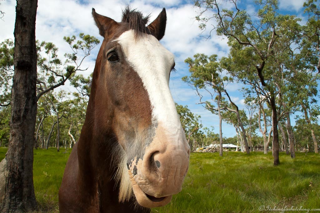 After our coffee we visit the Clydesdales, this is a working Clydesdale ranch and passionfruit farm. We walk through the rainforest to Cameron Creek ever mindful of crocs. Brush turkeys scratch about the camp. Tan coloured ants with big emerald green bellies (green ants) walk all over us and two ugly yellow spiders “own” the rubbish bins. But hey, there are no cars, planes, trains, trucks only the sound of birds and the squeak of tree limbs in the bush.