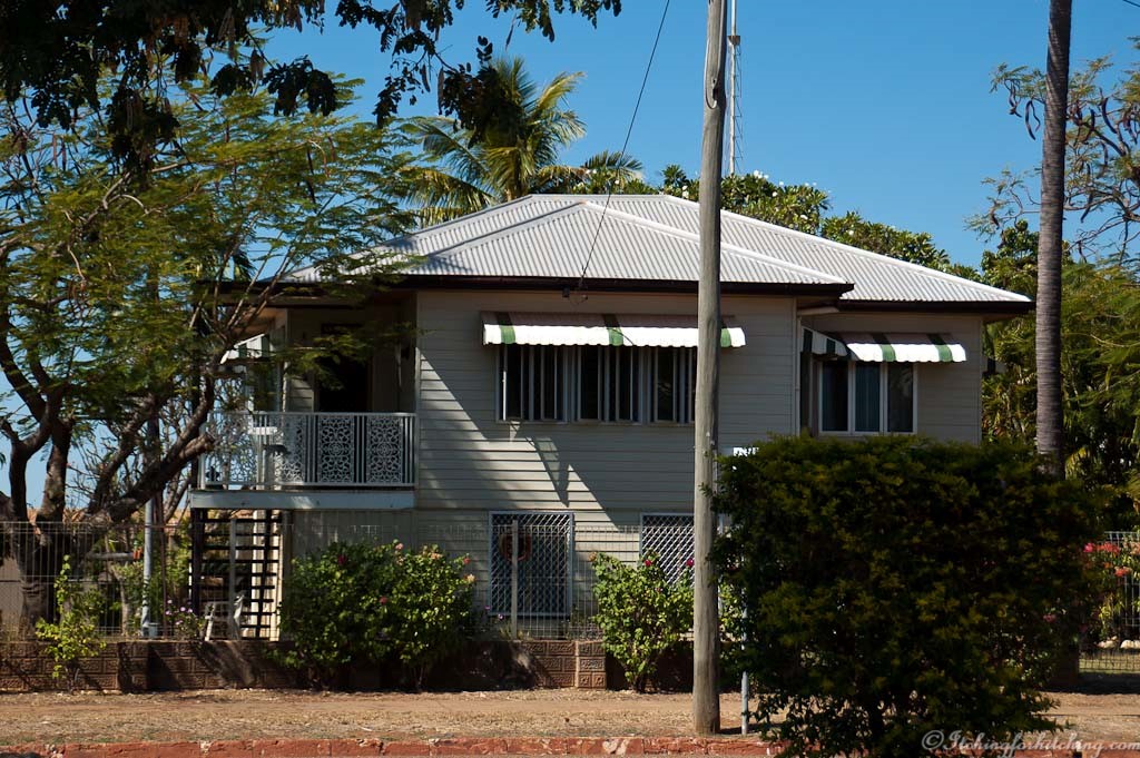 Norman River, Normanton, QldInteresting gutters too.Queenslander style of homes, two story weatherboard to keep cool and above the floods and creepy crawlies