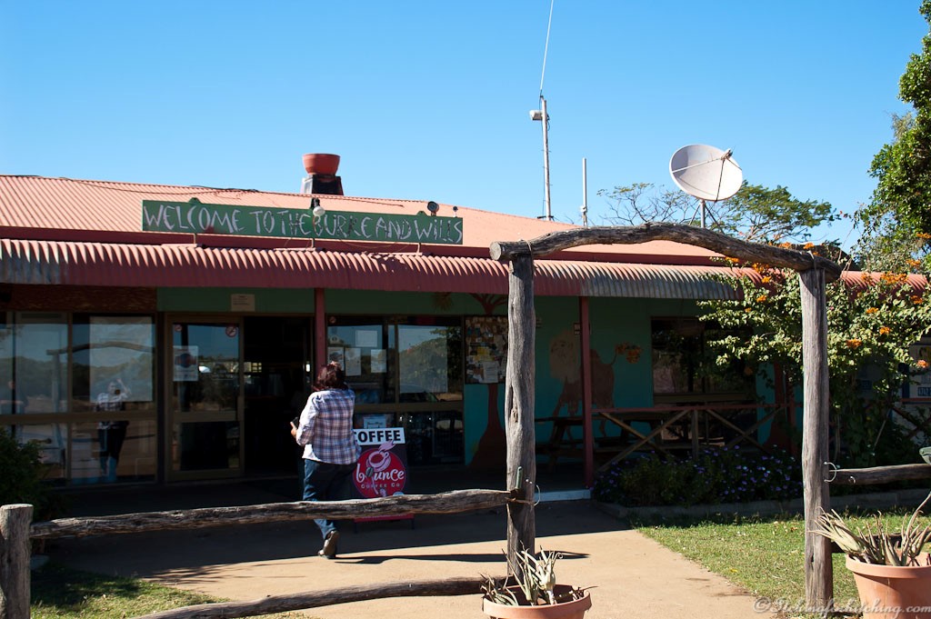 The Burke and Wills Roadhouse is at the junction of the road to Gregory Downs and Burketown. It is a licensed roadhouse serving meals and providing camping sites out the back. As it is windy, dusty and still only 10:15 we press on to Cloncurry. A flock of bright green budgies rise up and wheel in front of us splat, splat, splat, yuck!