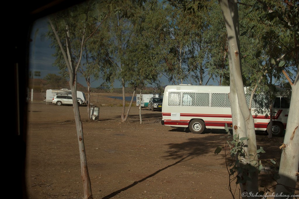 Cloncurry is the largest town we’ve seen since Atherton, wow it even has a Woolies. But being a Saturday afternoon everything is closed and even Woolies have run out of newspapers, so Woody misses out again. We stop at Clem Walton Park, Corella Dam which is about 60kms shy of Mt Isa. It is dry and dusty but there is water in the dam. There are shady gums and lots of birdlife. There are about thirty vans here and there are fresh water crocs as well. On a wander to the water who should we find camped by the lake shore but the Kiwi ladies from Bouldercombe. There’s plenty to catch up on as they’ve been out to Boulia to see the Camel Cup and are now waiting for the Mt Isa Rodeo. They are raving about the beauty of this place and having lived in New Zealand I’m a little surprised. I ask where they live at home and they proudly declare Queen Charlotte Sound. I wander off shaking my head, they live in one of the most stunningly beautiful places on earth, but hey it doesn’t have crocdiles!