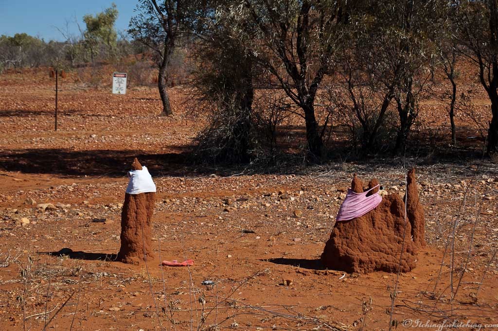 The Landsborough Highway is now known as the Matilda Way. The landscape is dry and scrubby but our interest is kept up by spotting clothed termite mounds. This really is a sport in these parts.