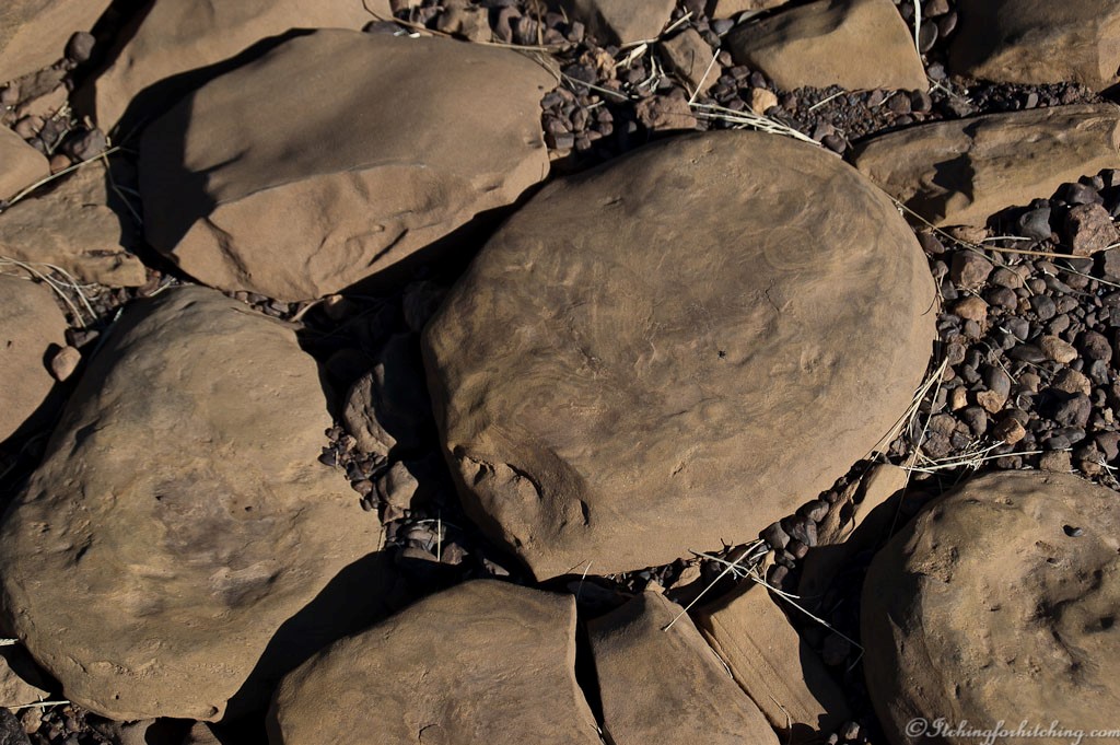 Back on the highway there’s just a flat yellow plain of Mitchell grass, not a cloud in the sky. We divert to pay homage to the Combo Waterhole. There is 8kms of good dirt road then a two and a half kilometre walk through paddocks of Mitchell grass and around billabongs. It’s getting hot and as we walk we pass a bunch of old blokes (our age) with towels, they’ve just been in for a swim. This is part of the Diamantina River and the billabongs have been cleverly dammed with large stones to maintain water during the dry. The dams are called overshots and the method obviously works as the Combo has water in it.