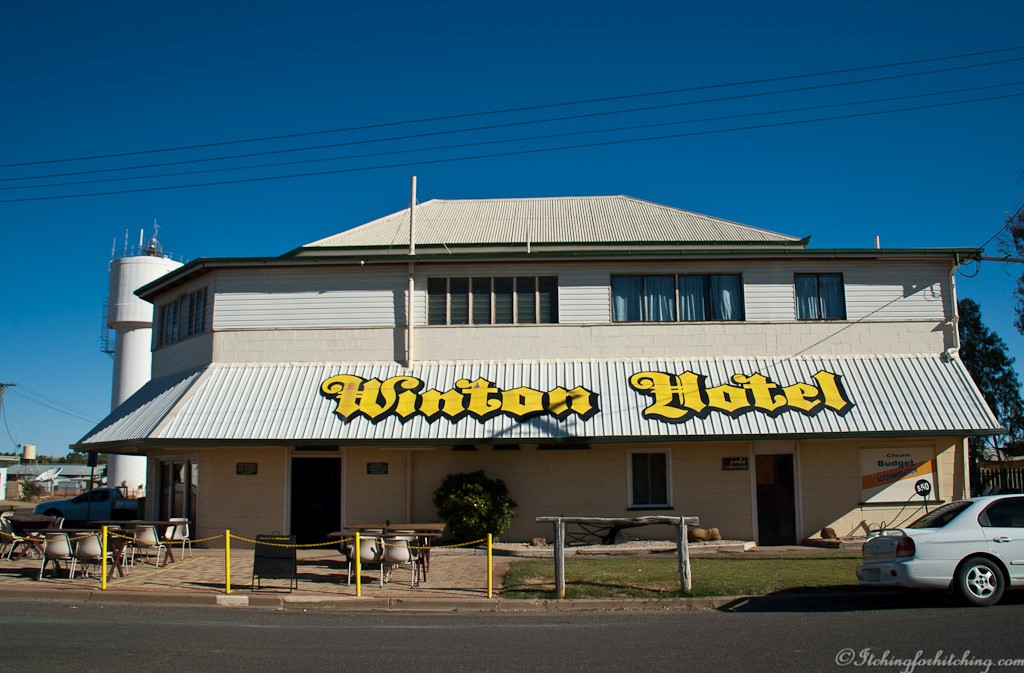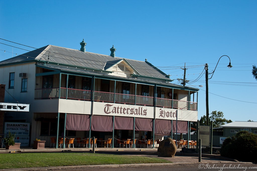 The Winton Hotel is the oldest in town and there are saddles hanging above the bar. From pack horse saddles to racing saddles. The bright yellow Australian Hotel is cheery with tables on the footpath dressed in 50’s plastic tablecloths. The Tattersall’s hotel is your true outback pub, lots of jock hanging from the walls, flags on the ceiling and a purple haired bar maid ‘’what’ll it be gorgeous?” She asks.