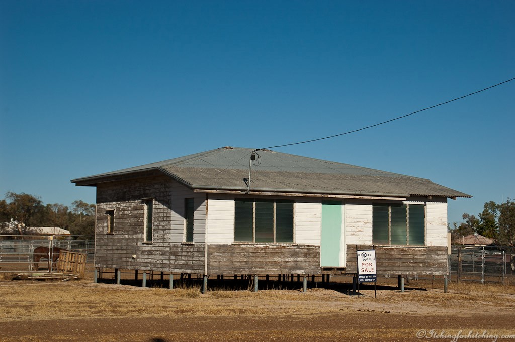 I think someone has stolen the clouds. We haven’t seen a cloud in days and the land is so flat as to almost curve on the horizon. It even feels flat. If that’s possible. There are little dips in the road for dusty dry creek beds to flow over, one day. The houses sit about a foot above the ground for air flow and everyone lives in tins. The houses are built with metal cladding or corrugated iron even the motels. Temporary housing is in dongas and the van park amenities are metal portables. Even the new library is corrugated iron. Of course, our caravans too are mostly aluminium.