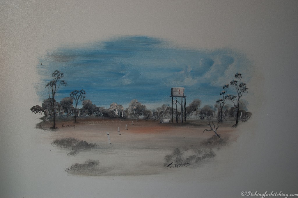 A little art doesn’t go astray in the outback as it softens the harsh landscape. In Mt Isa there are beautiful murals on corrugated iron sheets at the rodeo park. Here in Winton the van park doors have outback scenes painted on them. In the streets there are desert garden plantings instead of lawn nature strips.