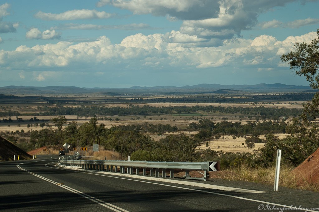 We wind our way through little towns, Eisvold, Binjour (where it’s always bin day) and ever-changing countryside. There are small farms and rusting windmills, houses with mango trees and bananas around them. Yes, we are getting close to the coast. The distant sky is filled with grey bottomed clouds and there are warnings on the radio of imminent hailstorms for the coastal towns.