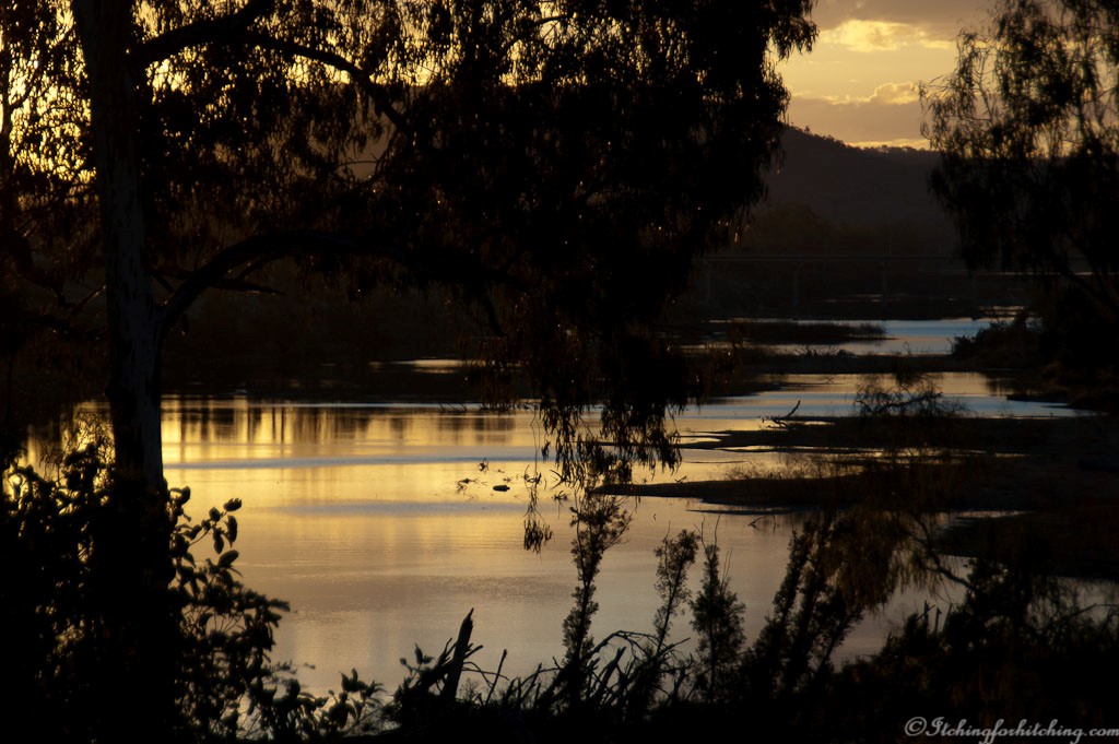 Not wanting to catch up to the bad weather we intend to stay at the Claude Wharton weir at Gayndah but it has been closed to campers. There is however a travellers rest called Zonhoven Park beside the Burnett River just east of town.
