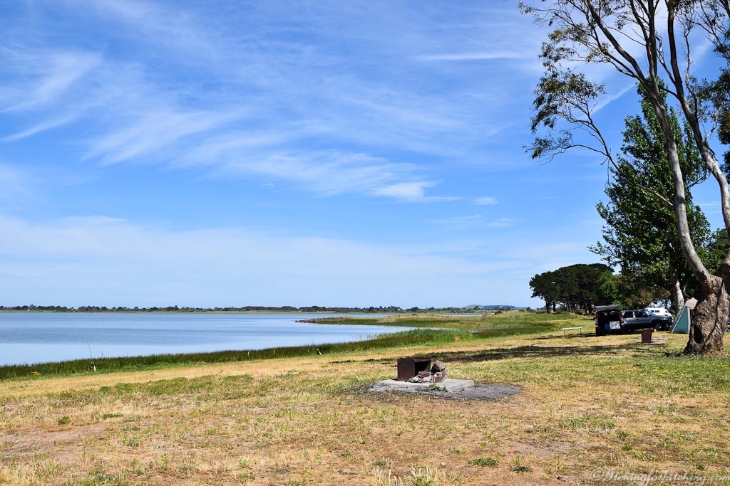 We setup on Lake Colac at Meredith Park. The wind is still blowing off the lake so we shelter inside until others start arriving which makes it a good chance to devour the last of the Great Pyramid that was last night’s parmie. It’s even better cold.