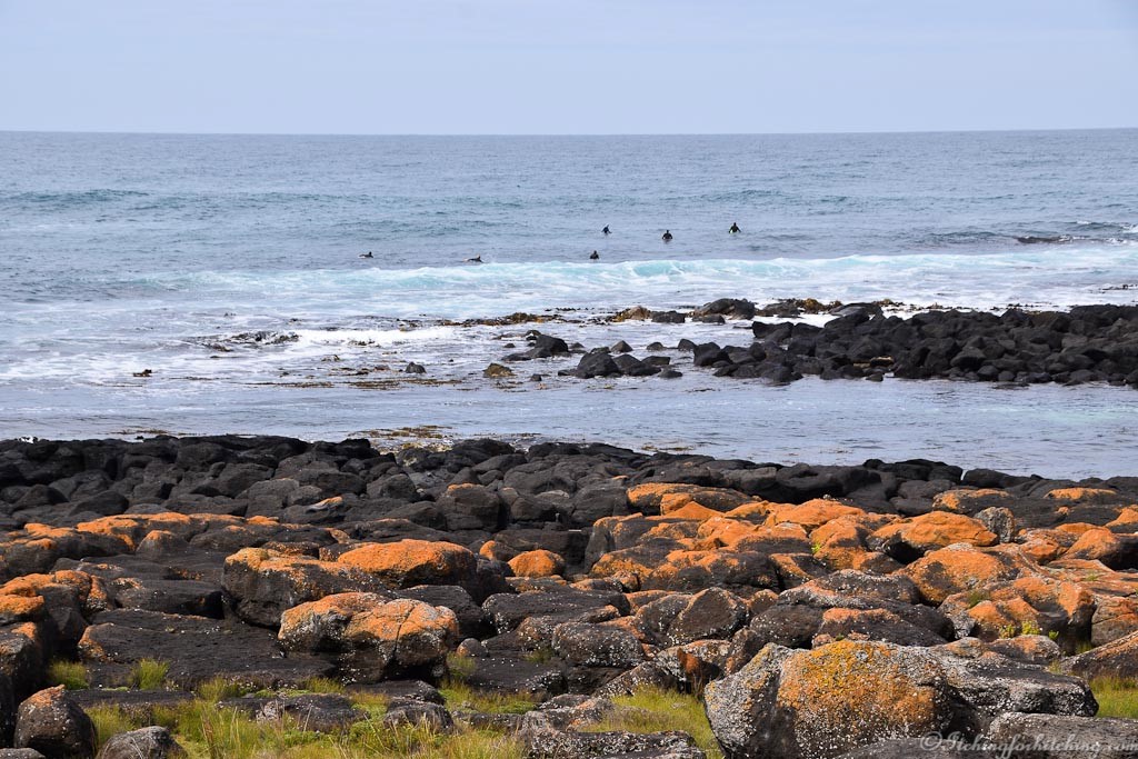 Port Fairy has a good sprinkling of boutiques, interesting shops for a browse and plenty of cafes and restaurants. One would not go hungry in this town. We visit the farmer’s market on the old railway station site and buy fresh local vegies and passionfruit butter. The butchery in town is impressive. A big old style butcher shop with good quality meat. We eagerly head off to the newly refurbished Star of the West pub for a hearty dinner. Out beyond Griffiths Island surfers catch a break in the icy waters.