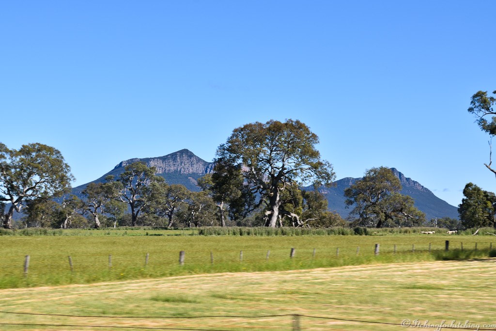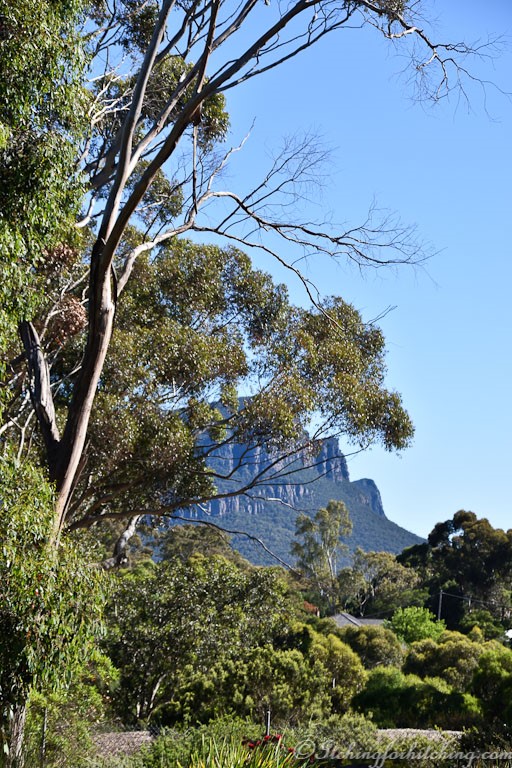The drive along the southern slopes of the Grampians or Gariwerd is always a treat to the eye. Soft yellows and greens of the paddocks are bordered by straggly and ancient gums and the deep blues of the ever-present majesty of Mt Sturgeon. I can never pass through this area without sneaking a shot of Mt Sturgeon.