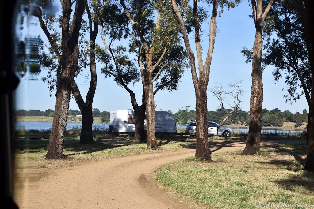 With hardly anyone around the campground at Lake Bolac we bag lakeside spots and settle in to do little but enjoy the warmth and the views of the powder blue lake. Crane flies that look like mosquitoes but are thankfully harmless settle all over the cars and caravans.