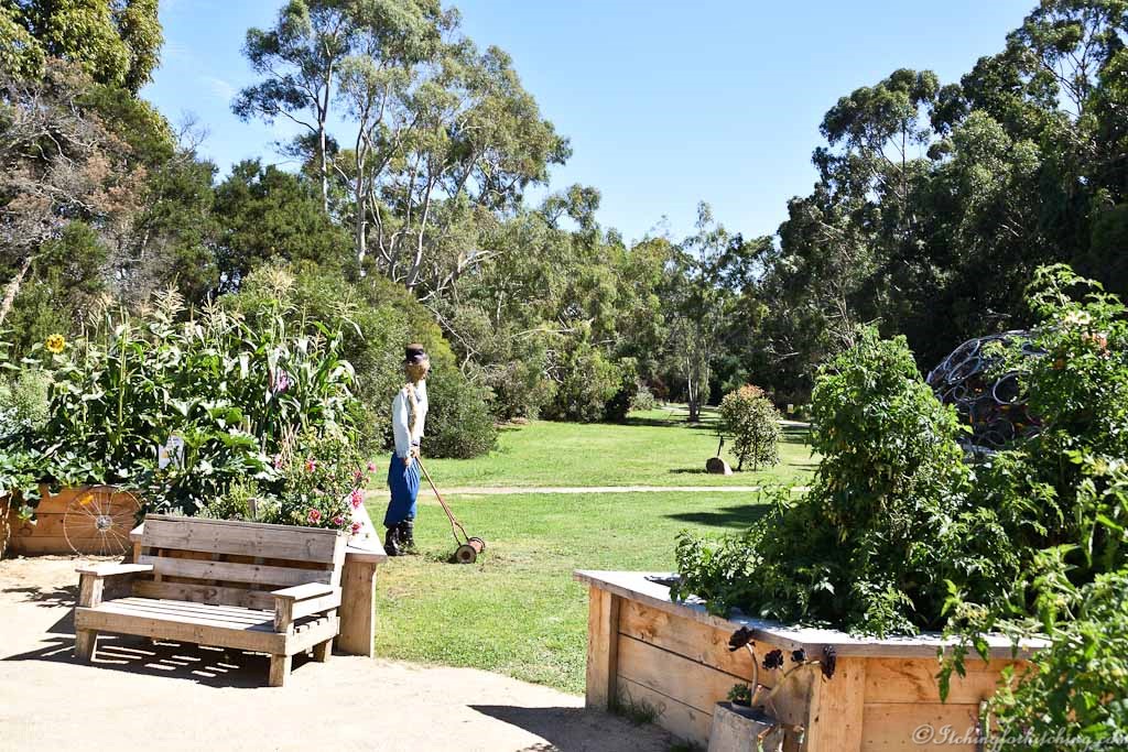 In fact, we recently ‘discovered’ Meeniyan Recreation Reserve on the WikiCamps app and with a caravan club muster on the calendar we checked it out for the suitability of a few nights of free camping. Not being brave enough to lead a whole bunch of caravans off into the unknown, we took a drive down there for a peek. Sure enough, this little place in South Gippsland looked quite enticing on a sunny summer’s morning. We returned a few weeks later and our mob rolled in. Everyone got a nice site on mowed lawns and their choice of shade or sun. There were galahs grazing on the lawns, fantails in the shrubbery and kookaburras in the trees. Across the oval there were clean flushing toilets, a water tap and a dump point. The town volunteers are working hard here to renovate a toilet block closer to the camping area. It sounds perfect doesn’t it? But it gets better. The bright and cheerful little village of Meeniyan is but a 2minute stroll away along a concrete path which leads directly to the IGA supermarket and the bakery. The town has a variety of shops, a restaurant, cafes, bakeries and a pub. The main street has a central garden of flowers and vegetables shaded by flowering gums that were planted by the local school children long ago as a memorial to World War One soldiers. For the energetic the Great Southern Rail Trail passes the campground. If you like home grown vegies the Meeniyan Community Garden is nearby where freshly picked vegetables can be purchased for a small donation.