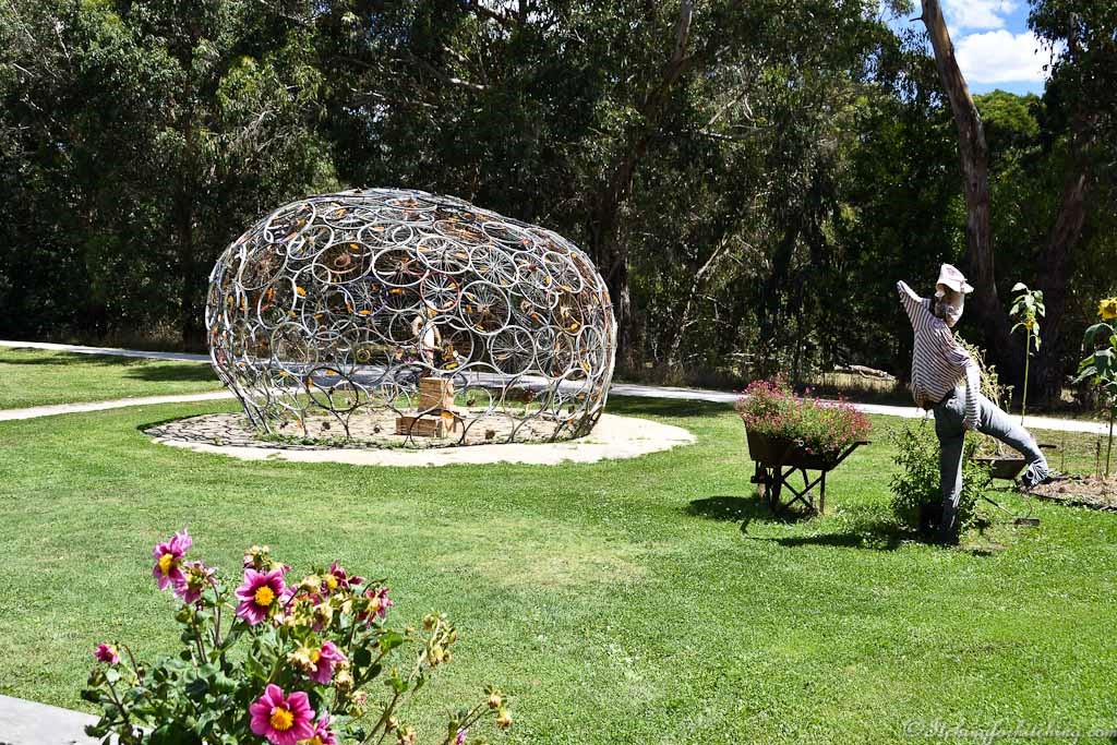 In fact, we recently ‘discovered’ Meeniyan Recreation Reserve on the WikiCamps app and with a caravan club muster on the calendar we checked it out for the suitability of a few nights of free camping. Not being brave enough to lead a whole bunch of caravans off into the unknown, we took a drive down there for a peek. Sure enough, this little place in South Gippsland looked quite enticing on a sunny summer’s morning. We returned a few weeks later and our mob rolled in. Everyone got a nice site on mowed lawns and their choice of shade or sun. There were galahs grazing on the lawns, fantails in the shrubbery and kookaburras in the trees. Across the oval there were clean flushing toilets, a water tap and a dump point. The town volunteers are working hard here to renovate a toilet block closer to the camping area. It sounds perfect doesn’t it? But it gets better. The bright and cheerful little village of Meeniyan is but a 2minute stroll away along a concrete path which leads directly to the IGA supermarket and the bakery. The town has a variety of shops, a restaurant, cafes, bakeries and a pub. The main street has a central garden of flowers and vegetables shaded by flowering gums that were planted by the local school children long ago as a memorial to World War One soldiers. For the energetic the Great Southern Rail Trail passes the campground. If you like home grown vegies the Meeniyan Community Garden is nearby where freshly picked vegetables can be purchased for a small donation.