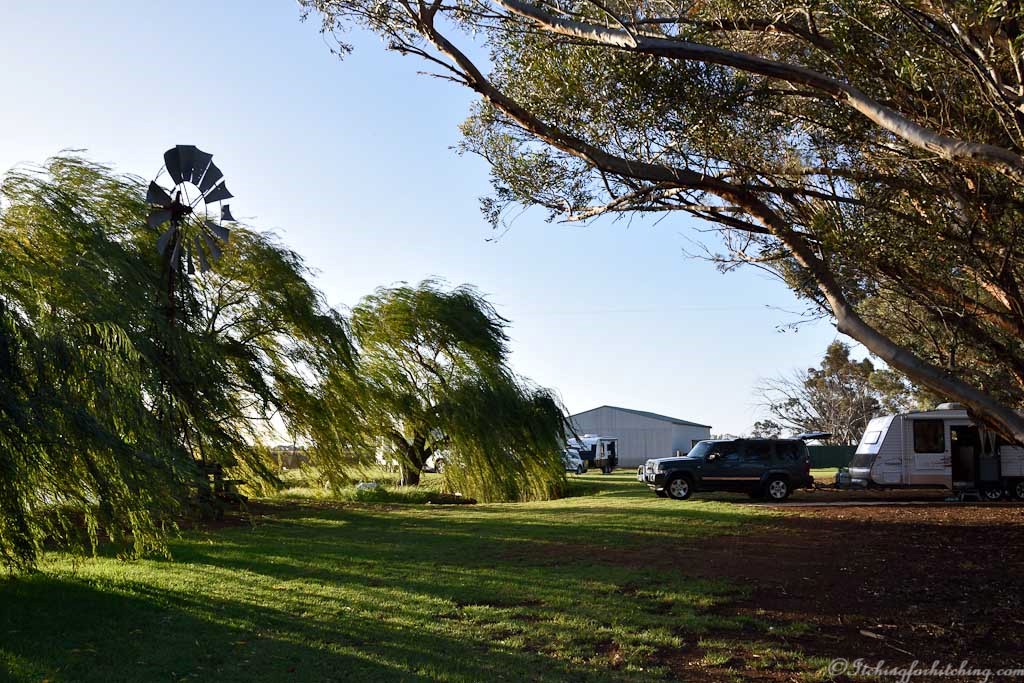 Over at the homestead Ian’s and his wife Marilyn are busy preparing tomorrow’s lunch for 27. We share a drink by the open fire with a couple from Albury then heat our dinner on VeeWee’s stove as it is too cold and windy to cook outside on our BBQ.