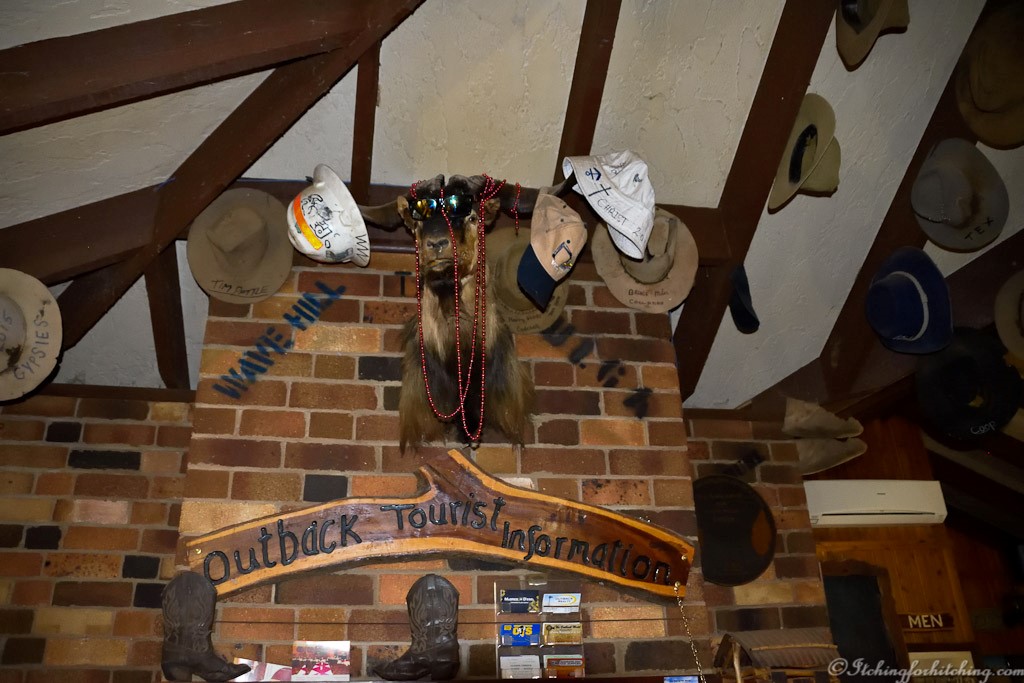 In the evening we walk up to the pub for dinner and learn that the goats are in fact sheep that the lady publican calls “The Kelly Gang”. She’s a Kelly and the sheep adopted the publicans when they bought the place. They are a mixture of Damara and Dorpers apparently a good cross and bred for meat. The Damaras don’t require shearing and have long shaggy wool and fat tails. Mrs Kelly goes on to describe how sheep are neutered and how even feral animals will lose their gamey taste when neutered. We’re somewhat overwhelmed by talk of green rubber bands secured in nether regions but Mrs Kelly is a sheep expert from way back.