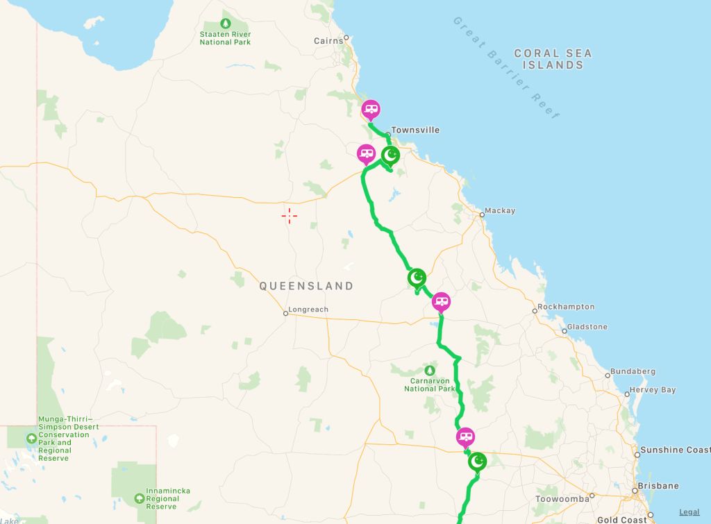 We spend hours stocking up on supplies in Townsville. And searching for a coffee wholesaler, one of which has his home address listed on his website rather than the business address. We find ourselves driving up near vertical streets on the side of ritzy Castle Hill. With the van on the back, I can’t breathe for fear that we won’t be able to turn around or go uphill if it gets any steeper. Woody is blissfully admiring the all-encompassing views and stunning homes. If this roaster guy lives up here, then his coffee business must be good!