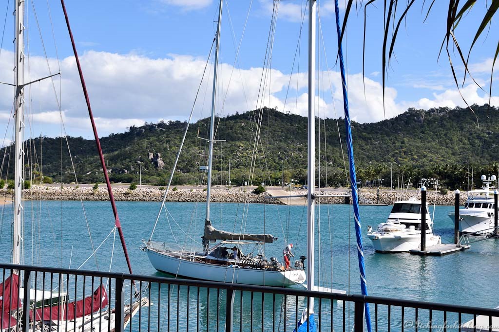 We disembark in Nelly Bay and decide to have lunch before touring. From there things go pear shaped. The Thai restaurant we’re longing for is closed and we’re seriously over fish & chips. In the heat we trudge back to the wharf and the welcoming Peppers Resort. Lunch goes swimmingly, the wine is nice and bugger it, we give up on any ideas of sight- seeing, there’s nothing wrong with the view of the marina anyway.