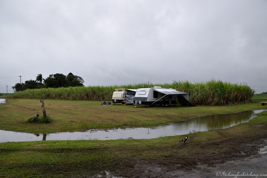 It is still wet with a shower hourly. The roadsides are swamped, creeks are swollen and the Bruce Highway is cut further south at Marlborough. Our sugar mill tour on Monday has been cancelled as due to inclement weather all harvesting has been stopped.