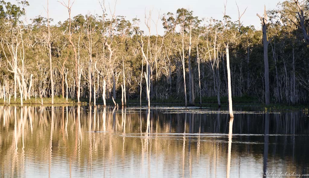 By a quirk of Wikicamps fate we find a little farmstay called Binnowee Bush Camp just north of town and as we drive in looking like rabbits caught in the headlights, host Gilda welcomes us with open arms at the farm gate and leads us down the back paddock in her old blue Suzuki. Beside a lake and a stand of melaleuca there is a large grassy space. Big enough for eight self-contained vans and with fire pits dotted around one could shut out the world here, but there is a three day limit, Gilda likes meeting new people. We light the fire, roast a rack of lamb with Gilda’s sweet potatoes and eat by the fire as the birds settle in the trees.