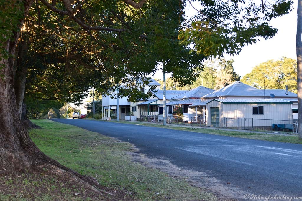 After the constant traffic noise at Burleigh Heads, Woody had requested that I find a quiet free camp and possibly with a pub. A few kilometres off the Grafton Road and hidden in the forest is a little dot of a town called Rappville. There are a hundred or so residents and of course being in the heart of the forest it all began with timber cutting. The pub was built in 1911 to a standard “Commercial Hotel” design. We soon learn that this design was used to build pubs all over the place. There was once a railway station opposite and railway tea rooms next door. The pub looked after the needs of ‘Commercial Travellers’ who travelled by train back then.